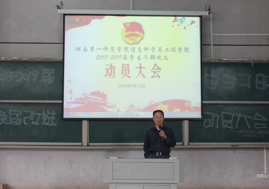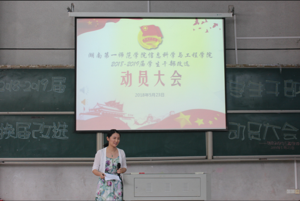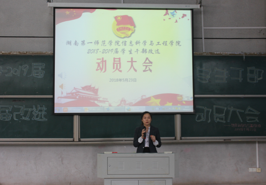 (通信员 向钰雪 邓力超 陈思迁)为推动我院2016-2017届学生干部换届改选工作顺利完成,5月23日中午,87365最快检验中心在文报厅举行了2018-2019届干部换届改选动员大会。学院党总支书记王杰文教授、党总支副书记易利老师学工办关红儒老师、唐瑞鸿老师、团学会全体学生干部和助理以及各班班长、团支书参加本次会议。会议由唐瑞鸿老师主持。